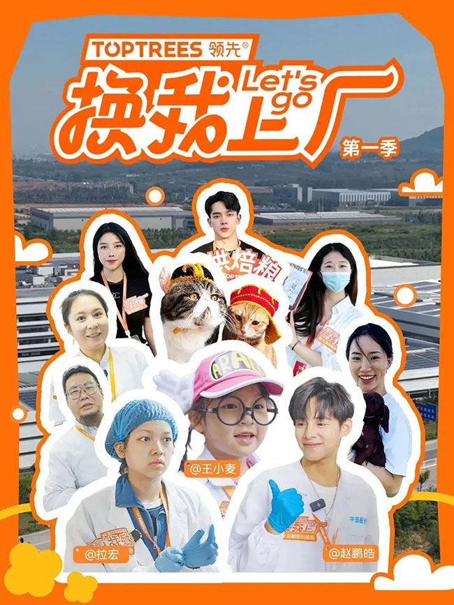 在第一季《换我上厂》营销运动中,,,,, ,,Toptrees领先?约请小麦、拉宏、赵鹏皓等10位跨界达人进入Toptrees领先?的产品生产工厂,,,,, ,,深度加入烘焙粮的生产一样平常 。。 。。。。。将宠粮大厂的真真相形及事情状态泛起给列位养宠家长,,,,, ,,向用户转达来自上市工厂的定心和定心 。。 。。。。。