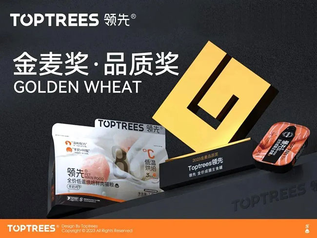 历经3个月的评审,,,,, ,,Toptrees领先?烘焙猫粮、99主食罐两款热门产品同时荣获2023年金麦奖·品质奖,,,,, ,,这也是Toptrees领先?一连四年获得金麦奖·品质奖 。。 。。。。。