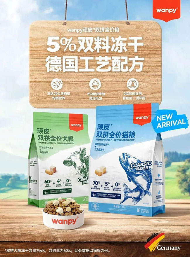 9月,,,,, ,,wanpy顽皮?线下明星单品双拼主粮迎来3.0新升级 。。 。。。。。从科学喂养的用户需求出发,,,,, ,,将“生骨血”和“冻干”相团结,,,,, ,,在原有真肉冻干的基础上,,,,, ,,组合添加主食级生骨血冻干,,,,, ,,适口性更好,,,,, ,,营养价值更全,,,,, ,,再帮手以2%深海鱼油,,,,, ,,一袋知足萌宠每餐的鲜味享受,,,,, ,,富厚线下消耗者购置选择 。。 。。。。。